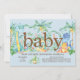 Adorable invitation de bébé dinosaure avec un mignon dinosaures sur une scène de jungle tropicale amusante sur un arrière - plan bleu. Invitation mignon pour un baby shower garçon. Visitez notre boutique pour voir cet invitation en d'autres couleurs.