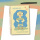 An adorable school planner for kids featuring a whimsical yellow duck carrying a blue book on the front and a yellow and green stripe pattern on the back . Personalize it with the child's name and the academic year . Pick a size .