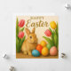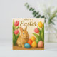 Happy Easter Card. Cute bunny, tulips and eggs.