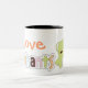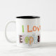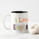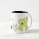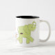 Douce tasse, avec adorable graphisme d'un éléphant à pois vert. Texte coloré : I Love Elephants. Grand mug pour la maison ou le bureau et fait un bon mug cadeau pour les enfants.
