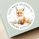 Étiquettes d'assiettes avec un joli tableau aquarelle d'un petit renard et texte personnalisable "ce livre appartient à" et votre nom sur un arrière - plan blanc.