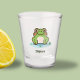 Ein Schuss Glas mit einer Abbildung eines niedlichen Frosches auf seinem Teich und anpassbarer Text unten! Es könnte ein perfektes Geschenk für einen Freund, der Kawaii Liebe Tier und Natur!