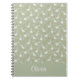 Cute personalised notebook with custom name, geese, eggs and goose footprints pattern on sage green