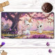 Un mignon tapis de bureau girly avec un monde d'imaginaire avec des licornes magiques dans de belles couleurs roses et violettes.