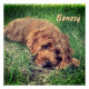 A poster with a cute image of a Golden Doodle. The background, image and text can be personalized. Original artwork by W.B.