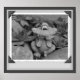 Jolie grenouille de jardin entourée de poules et poussins succulents album photo look noir et blanc imprimé poster. Photo nature par Susan.