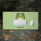 Un tapis de bureau vert avec une illustration d'une grenouille mignonne sur son étang et texte personnalisable ci-dessous! Ajoutez une touche amusante à votre travail ou utilisez-le comme tapis de jeu pour vos enfants !