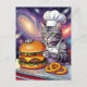 Cute Grey Tabby Cat Chef Making Cheeseburger Postkarte