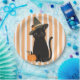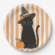 Cute Halloween Black Cat with Witch Hat Pumpkin Pappteller