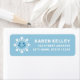 Return address labels with a cute happy white snowflake on a blue background. Fonts and colors can be customized with the design tool.