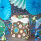 Dark flower power pattern on party products and favors.