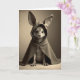 Designed with a small, cloaked creature centered on the front, set against a softly blurred, single-tone background in warm sepia shades. Its hooded wrap falls in muted earthy browns, framing a gentle face with a tiny pink nose and fine whiskers. Two long ears rise from beneath the cowl, giving it a shy, attentive look 🐇. Large dark eyes gaze forward with a tender, almost affectionate focus, like it’s quietly keeping someone close in mind. Warm light brushes the fur and fabric, showing soft texture along the cheeks and folds around the shoulders. Near the top, a short Easter greeting sits in small, simple lettering in a light cream color, with a second line in slightly darker brown placed near the bottom. Its little forepaws rest at the front edge of the cloak, and small pointed claws peek out beneath the fabric 🐰.