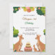 Jolie invitation kangourou anniversaire pour les fêtes d'enfants! Avec des animaux ludiques, des ballons et un gâteau festif, ce modèle modifiable est parfait pour les garçons ou les filles. Personnalisez facilement avec le nom de votre enfant et les détails de la fête.