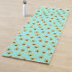 Adorable avocado patterned yoga mat features an allover pattern of smiling kawaii style avocados on a vibrant turquoise teal background. A cute design that's perfect for avocado lovers or kawaii fans!