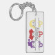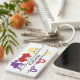 This cut fan art cat design name tag gets its inspiration from the Sanderson Sisters of the hocus pocus Salem variety. Three cute cartoon cats with iconic hairstyles in purple, red, and blonde, hang from a monogram bar that can be personalized with your name.