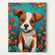 . Adorable art de l'air blanc avec un chat kitty orange et chien chiot brun et blanc entouré de fleurs d'art populaire en rose, orange et turquoise.