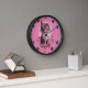 Cute Kitten Pink Mur Horloge avec Chat Noir Paw