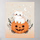 Cute Kitten Sitting On Pumpkin Modern Halloween Poster