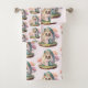 Serviette à motifs sertie d'une adorable image avec un lapin rond debout devant sa maison en forme d'oeuf. Les couleurs pastel et les cerisiers lui donnent une ambiance kawaii japonaise.
