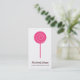 Cute Lollipop Cartes de visite de la boutique de bonbons. Les cartes de visite d'une confiserie simple et moderne ont un design sucré "rose bonbon" avec votre nom de magasin sur le devant en brun. Le dos de la carte est rose, avec 4 petits lollipops blancs ornant le dessus. Customisez avec vos informations commerciales.
