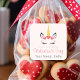 Cute favor sticker for Valentines Day with unicorn face, script and modern typography.