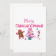 Celebrate the holiday season with this adorable pink Merry Christmas design featuring a smiling gingerbread cookie, a festive Christmas tree with a bow, and a sweet candy cane. Perfect for Christmas cards, stickers, mugs, T-shirts, and festive gifts! Bring a touch of pink joy and holiday sparkle to your Christmas collection.