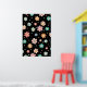 A bright and cheerful pattern of cute flowers and spots in a multicolour palette.