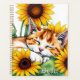 Cute cat themed personalized planner. An adorable ai watercolor illustration of a little white and orange kitten taking a nap in a bunch of sunflowers. Add this sweet, cozy décor into your space to induce a relaxing environment.