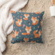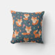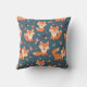Ein Kissen mit niedlichem und fröhlichem Orangenfuchs. Dunkelgrüner Hintergrund. Kleine Pilze und Blätter sprengen herum.