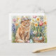 This Easter postcard features a charming AI-generated watercolor image of an orange tabby cat in a delightful flower garden. The cat, wearing a spring hat and carrying a basket full of colorful Easter eggs, is sure to bring joy to animal and cat lovers this Easter season.