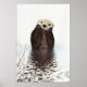 Ein Poster mit einem Foto eines niedlichen Otters, der aufrecht im Wasser stehend ist, wobei seine Pfoten sein Gesicht halten. So bezaubernd.
