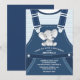 Baby shower d'éléphant mignon Invitation mettant en vedette la paire la plus mignonne de salopettes de bébé avec un éléphant en niveaux de gris. Unique Boys invitation baby shower pour un thème de baby shower safari de garçons dans la jungle.