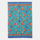 Un amusant Serviette de cuisine ou Serviette de thé, avec un motif de choux mignons en rouge, bleu, vert sur un arrière - plan turquoise. Le motif de hibou était un collage original peint à la main par Judy Adamson.