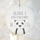 Commemorate baby's first Christmas with this cute keepsake ornament, featuring a simple modern black and white drawing of a panda. Personalize it with baby's name and the year in hand-drawn printing font.