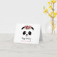 Jolie panda fille Bonne carte de voeux d'anniversaire. Le visage de l'ours en panda noir et blanc de style Kawaii est couronné de fleurs. Texte personnalisé.