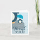 Customisez cette belle carte de Baby shower chic Merci Note, conçue avec un mignon bébé pingouin, debout à côté de son parent et tenant un parapluie bleu avec un coeur.