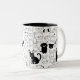 This adorable mug features a delightful pattern of cats, dogs, and bunnies illustrated in a playful black-and-white doodle style. Some animals appear in solid black while others are outlined, creating a charming mix of minimalist and fun visuals. Perfect for your morning coffee, tea, or as a cute addition to your desk décor, this mug brings a touch of joy and whimsy to everyday moments.