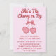 Cute Pink Bow Cherry on Top First Birthday Einladung