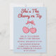 Cute Pink Bow Cherry on Top First Birthday Einladung