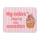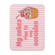 Sweet pink pastel striped magnet with quote "My cakes rise to chance" and delicious cherry cupcake illustration.