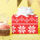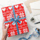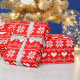 Cute fairisle heart pattern wrapping paper that can be personalized with your own text. The design features a white pattern of hearts and snowflakes and other geometric shapes on a bright red background. Simple and minimalist Fair Isle pixel pattern in a traditional Nordic style design. Ideal for winter holidays like Christmas, Valentine's Day or winter birthdays, anniversaries.