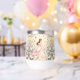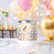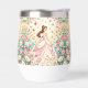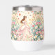 Cute princess with tiara in pink dress, with flowers and butterflies design.