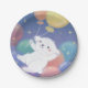 A cute fluffy white puppy with colorful balloons in night sky filled with stars
