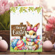 Send a message of love to your family member or friend with this Easter card design with bright colors and an image of a cute white rabbit with Easter eggs. The design can be personalized with a message for your beloved family member or friend! Don't think twice and get yours now.