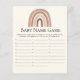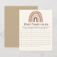 Carta de juego con el nombre del bebé, con tematica estilo boho con un lindo arcoiris en tonos cafe, ideal para ti fiesta de Baby Shower de primavera o verano. Los textos son editables Juego perfecto para jugar durante el baby shower. Se pide a los invitados que escriban los nombres de los bebés que comienzan con cada alfabeto. ¡Quien termine todos los alfabetos primero gana!