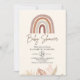 Lindo diseño para tu baby shower con tematica de Lindo arcoiris Boho en tonos Obscuros y claros con vegetacion estilo boho, un estilo moderno y elegante que hara tu evento de baby shower espectacular! . Personalice esta invitación estilo boho añadiendo sus propios detalles de evento. Esta invitación de baby shower es perfecta para duchas de Niño o Niña.