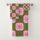 Cute Retro Boho Checkerboard Fleur Vert Pink Serviette de bain ensemble