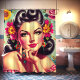 Cute Retro Floral Pin-up Portrait Duschvorhang