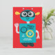 Adorable hand illustrated robot graphics make these second birthday invites cute and fun!