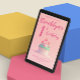Jolie invitation de fête d'anniversaire rose avec des graphismes de gâteau et de fleurs et texte rose changeable.